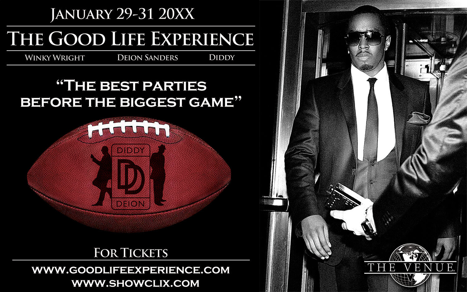 A high-profile lifestyle event created for celebrity hosts and athletes during Super Bowl weekend. Tasked with defining the visual identity for an ultra-exclusive experience, I led the full creative direction across branding, print, and environmental design — establishing a cohesive look that conveyed sophistication, nightlife energy, and luxury at every touchpoint.